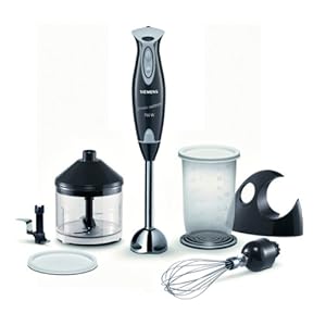 Siemens MQ5N6PE Stabmixer Highlights: 750 Watt Leistung, vibrationsarmer u. leiser Motor, inklusive viel Zubehör Produktdetails * 750 Watt * Kraftvoller, schlanker Stabmixer * Optimale Handhabung durch ergonomisches Design und griffiges Soft-Touch-Gehäuse * Leiser, vibrationsarmer Motor * Drehzahlwähler * Zusätzliche Turbo-Taste für maximale Leistung * Hochwertiger Edelstahl-Mixfuß * Eject-Mechanismus ermöglicht leichte Mixfuß-Abnahme * Universalzerkleinerer mit herausnehmbarem Feinschliff-Edelstahlmesser und Deckel * Separates Ice-Crush-Messer für den Universalzerkleinerer * Schneebesen aus Edelstahl * Skalierter Mixbecher mit Deckel * Mixfuß und gesamtes Zubehör (außer den Getriebeteilen) sind spülmaschinengeeignet * Geschenkverpackung * Wandhalter Zubehör * Mixfuß * Universalzerkleinerer * Ice-Crush-Messer * Schneebesen * Mixbecher mit Deckel * Wandhalter Das stärkste Handrührgerät der Welt, 750 Watt-Leistung, sufenlose Drehzahl-Regelung, Leiser & vibrationsarmer Motor, inkl. Ice-Crush-Messer; - Top-Leistung und dabei angenehm leise und durch den 750-Watt-DC-Motor- Stufenlose Drehzahl-Regelung- Leiser, vibrationsarmer Motor- Zusätzliche Turbo-Stufe für maximale Leistung- Optimale Handhabung durch ergonomisches Design und griffiges Soft-Touch-Gehäuse- Mixfuß und gesamtes Zubehör (außer den Getriebeteilen) sind spülmaschinengeeignet- Eject-Mechanismus ermöglicht leichte Mixfuß-Abnahme- Hochwertiger Edelstahl-Mixfuß- Praktischer Universalzerkleinerer mit herausnehmbaren Feinschliff-Edelstahlmesser und Deckel- Separates Ice-Crush-Messer für den Universal-Zerkleinerer- Schneebesen aus Edelstahl- Skalierter Mixbecher mit Deckel- Wandhalter- Schwarze Zuleitung- Geschenkverpackung Vielseitig und scharf auf alles Feine: der Stabmixer MQ 5N6PE Power Edition.Im neuen Stabmixer MQ 5N6PE Power Edition von Siemens stecken jede Menge guter Ideen: zum Beispiel das Soft-Touch-Gehäuse für optionale Rutschfestigkeit oder der extralange und besonders hochwertige Edelstahl-Mixfuß. Dank seiner starken Motorleistung bon bis zu 750 Watt ist der Siemens Stabmixer MQ 5N6PE Power Edition allen Zutaten gewachsen. Im Universalzerkleinerer können spritzgeschützt Nüsse, Mandeln, Kräuter, Zwiebeln und Fleisch ganz fein zerkleinert werden. Das robuste Edelstahl-Messer mit zwei senkrechten Vorschneidern mixt und zerkleinert alles noch schneller. Das separate Ice-Crush-Messer sorgt für Crushed Ice in Sekundenschnelle. Per Knopfdruck gibt der Eject-Machanismus den Mixfuß frei, der dann bequem in der Spülmaschine gereinigt werden kann.